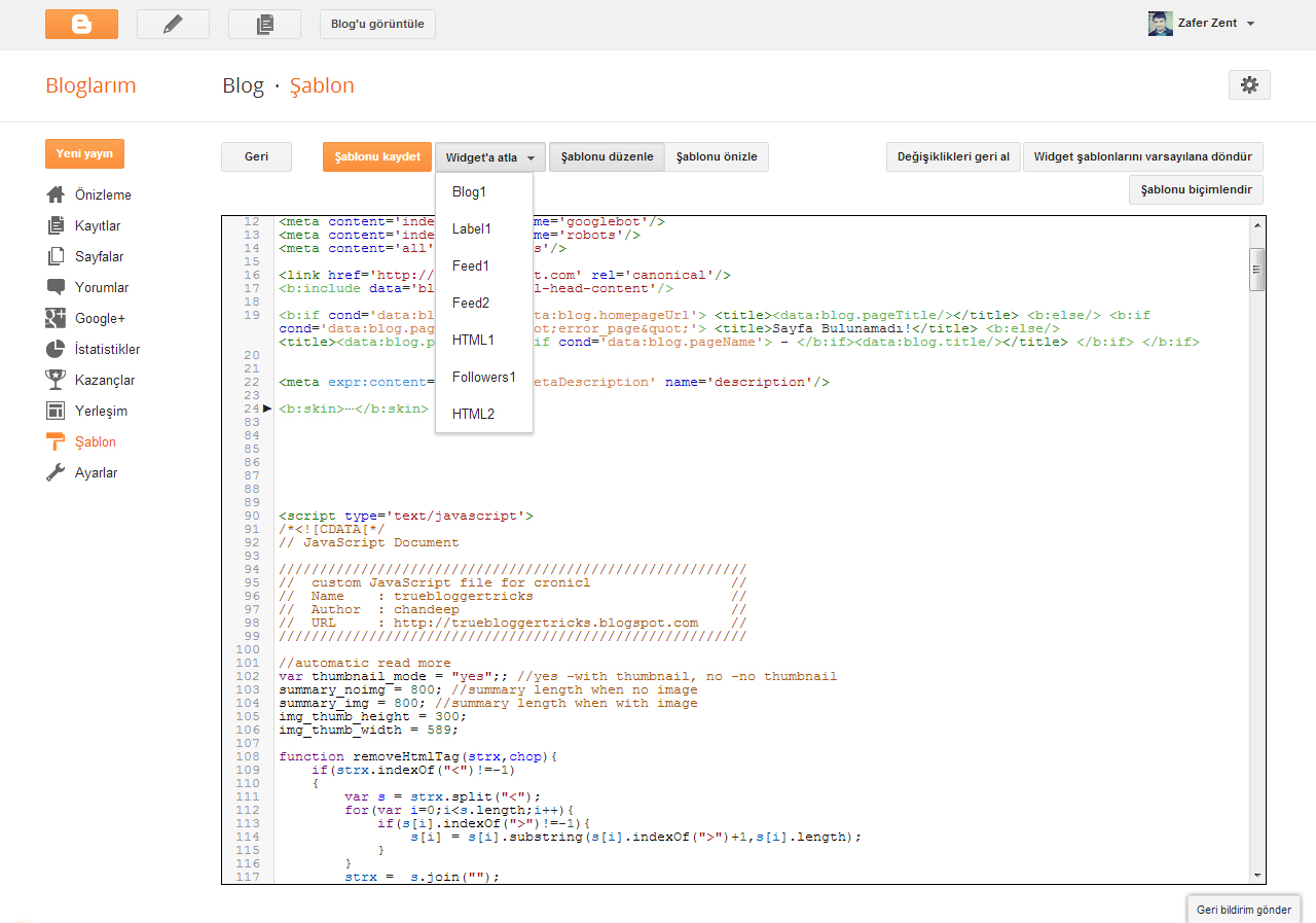 Bu özelliğin işlevi ise bloga eklenen widget'lere ait kodlara kısa yoldan ulaşmayı sağlıyor.