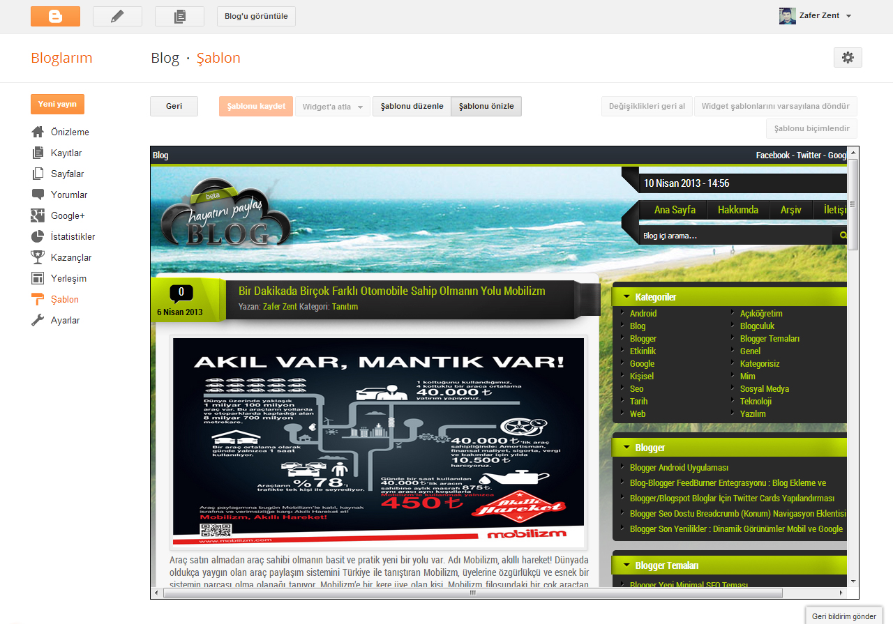 Uzun zamandır Blogger'da iyileştirmeler yapmayan Blogger geliştiricileri bugün fark ettiğim kadarıyla blogger şablon-tema editörü'nü sil baştan yenilemişler. Benim de sürekli olarak kullandığım ancak kullanımından hoşnut olmadığım şablon editörü daha anlaşılır ve kullanışlı bir hale getirilmiş. En azından önceki editör'e göre daha iyi bir yapıda olduğunu söyleyebilirim.
